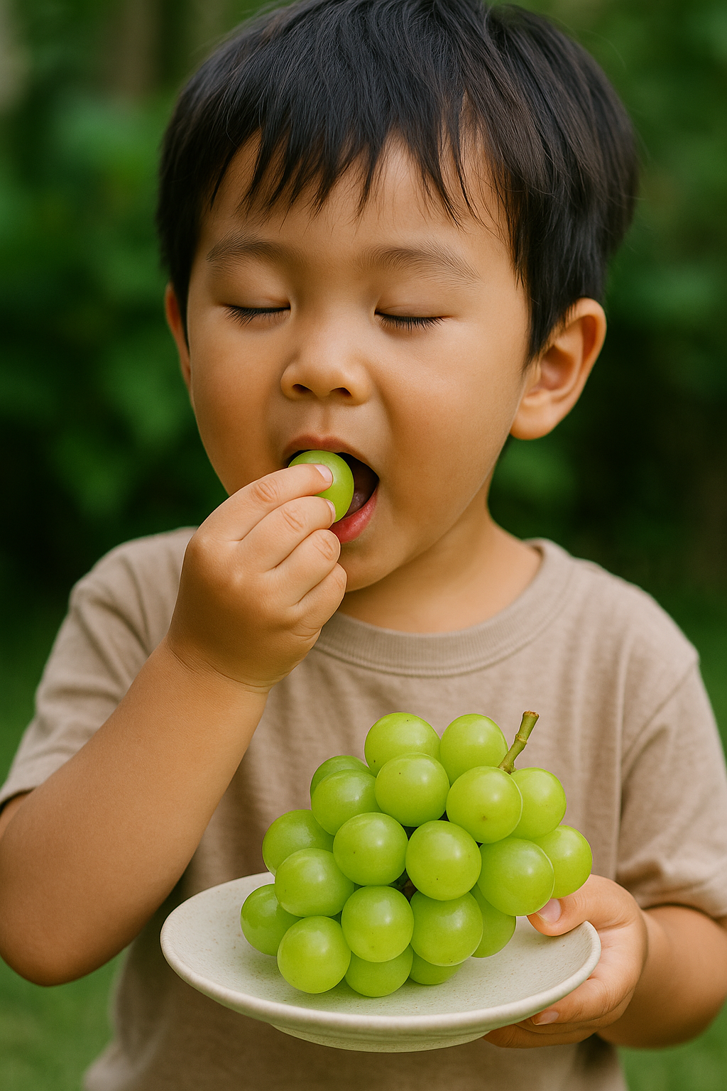 生産者は糖度を自在にコントロールできるので、甘いシャインマスカットはつくることはできますが、お子様でも飽きずに食べられる糖度に調整して生産しています。